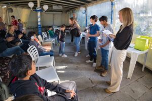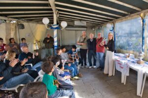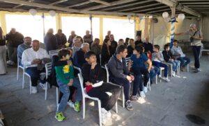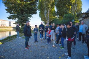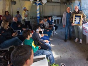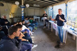 Mirko Dormentoni, Presidente del Quartiere 4 di Firenze, mentre parla ai ragazzi della Scuola di Pesca di Firenze